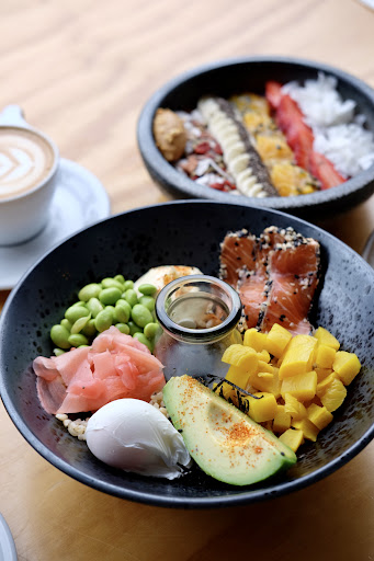 We started as the most fave menu, THE CHILLI SCRAMBLED, It is definitely a must try! Never go wrong with super soft scrambled eggs with extra chorizo, broccoli, fresh chilli, pesto, grain toast. (Iโd recommend adding some hashbrown too) Another one is the EGGS BENEDICT; Itโs a sourdough with crispy bacon, spinach, poached eggs which taste so delish especially adding with the burnt butter hollandaise. I also tried the BOSTON BAKED BEANS This baked white beans was surprisingly amazing with extra bacon, braised tomato, fried egg, crispy shallots, chilli lime. Itโs perfect for these cold day! This colourful dish is the SUSHI BOWL ; Itโs a very juicy and fresh Tataki salmon with some avocado, brown rice, poached eggs, nori (seaweed), edamame, togarashi seasoning, kewpie mayo, pickled ginger, daikon. Isnโt it just a perfect kind of healthy bowl?