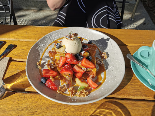 Arrived at 10am Saturday 10th August as booked. There was a beautiful table reserved for us in the undercover heated dog friendly area...although the being such large outdoor area on such a beautiful day...anywhere would be ok (I did request the undercover area). The building itself is gorgeous...looks like an old stable...beautiful restored and immaculately spotless. I'm not sure if it's a family run business...but the Asian staff/family were super friendly and professional. We ordered from a gentleman (who I assume was the owner)...who was genuinely warm and friendly. Our servers were professional, friendly and efficient. The 'owner' even popped out twice (on a busy morning) to see how we were. Despite being busy...food delivery was quick. Even though we had variations of egg dishes...all were spot on (so many places still can't poach or scramble eggs properly). The servings were a good size...and despite the quality of the premises...and upmarket surrounding real estate...excellent value for money. Even more impressive is their dedication and love for pooches...with a well thought out and very reasonably price dog menu. Parking is a bit limited in the car park (due to high rise apartments)...but we had no issues finding on street parking less than 100 metres away. Oh...almost forgot...coffee was excellent...and I'm fussy about my coffee. Highly recommended...