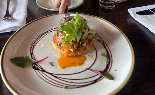 The atmosphere felt very squished in terms of table and seating set up. Was essentially back to back with surrounding tables so not spacious at all. Felt like they fitted more tables to get more customers in and focused on quantity over quality in comparison to other places.