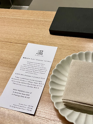 Chef Yong, who honed his skills at Komeyui and later served as Head Chef at KisumĂ©, has crafted an experience focused on quality ingredients and precise technique. Unlike KisumĂ©âs omakase, which felt more like a performance with smoke and dry ice, Sushi On delivers a refined, understated, and traditional approach. Watching Chef Yong slice and prepare the fish right in front of us - rather than serving pre-prepped sushi - made the experience even more special.
