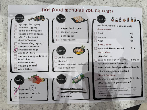 Read moreGo to Moto Roto instead. Went in hearing good things and expecting a decent feed. Spent $40 and only had two small plates of sushi that had been sitting there for who knows how long, one plate of 4 spring rolls, one plate of salmon nigiri which was probably left out too long, and one plate of fried veggies. Anything on the train was cold and disappointing. It had all been left out for too long and didn't taste good. You also couldn't order anything fresh off of the QR code so you were stuck with what was on the train. Too bad if you don't eat much seafood. Also, the all you can eat is literally just all you can eat fried food, which is also mostly seafood. My fiancée and I ended up leaving, paying the bill, and going over to moto roto and paying the same for more and fresher sushi. Hopefully this...
