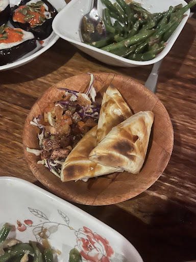 Read moreInteresting. Sounded expensive, it was, but good value for money. Plenty of food. Pretty packed into the space, even for the style of the setting and for the style of the food it felt too crammed. I was conscious that I was probably also speaking to the people at the table next to me. The portion sizes were large, which justified the price. I’m usually one to finish the table but takeaway was necessary. A fun assortment of food in the set course menu, with a couple of memorable dishes including the 7 spice chicken with wild rice, the Samboosek (halloumi pockets), and the drizzle of pomegranate molasses on the fattouch. The chicken was extremely tender, and as a dish with the chewy wild rice there was both amazing balance flavour and texture. The lamb tasted veryyy lamby, and the hummus had what was a beyond healthy pool of olive oil on top. The fattouch was highlighted by the pomegranate molasses.