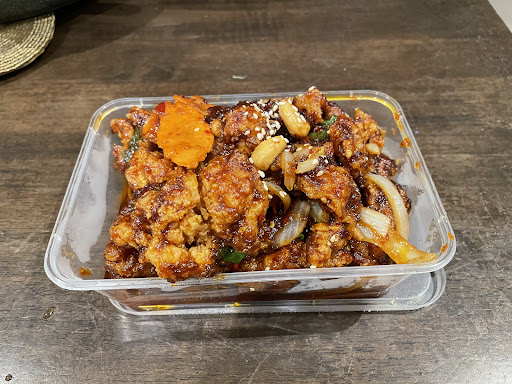 We had asked for Extra Spicy Stir Fried Basil with Vegetables and it was mind blowing hot. Loved it. They do take your input on how hot you want the dishes and that works well.