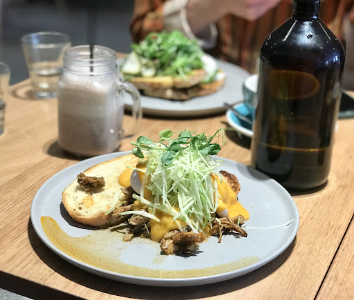 My youngest daughter (17yo) found this place and we came here for a Saturday lunch at 12 noon. Was pleasantly busy with the outside tables full, especially with dog owners. Be prepared for something quite special here in the burbs. The owners have put alot of thought into layout / decor and it's paid off. We were shown a table quickly and water given to us. The menu looked enticing but we were all watching what other diners were eating and the portion sizes. We ordered: Avocado Mint Mash ($17.90), Pulled Pork Benedict ($19.90), Crispy Chicken Burger ($19.90) and the Crumbed Halloumi Tortillas ($17.90). For drinks we had a chai, iced chocolate, chocolate milkshake and Emma & Tom's Lemon Quencher. Total lunch was $96. Meals were awesomely good. The portion sizes were perfect and everything was so fresh. Enjoyed the tortillas - quite different to what you may get elsewhere. You can also treat yourself to one of the many cakes or slices available on display plus of course, there is takeaway coffee but if you can, bring your own cup. Staff were helpful and friendly, despite working hard with such a busy cafe. Dietaries can be catered for, just let the staff know. Note: wheelchair friendly, kid friendly and high chairs available, good parking out the front or up/down the street. We will return. 🍔 🥛...