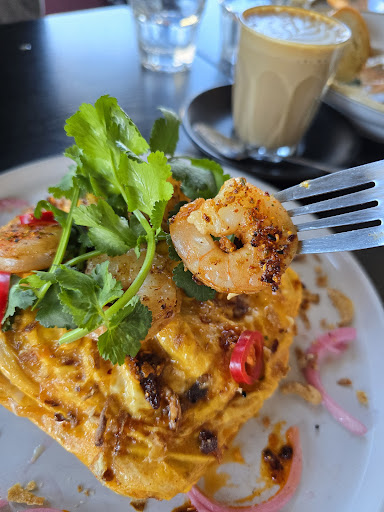 What We Tried & Loved: ✨️Creamy Tom Yum Seafood Pasta – Highly recommended! The aroma hits you the moment it’s served. Perfectly balanced flavours, with mussels the size of my finger and big, juicy prawns. ✨️Grilled Salmon – Crispy skin, perfectly cooked, and paired with a creamy sauce so good I cleaned the plate with sourdough. 👍🏻Chili Prawn Scrambled – A spicy, flavour-packed brunch winner. Latte Ice matcha latte Ice chocolate Babycino
