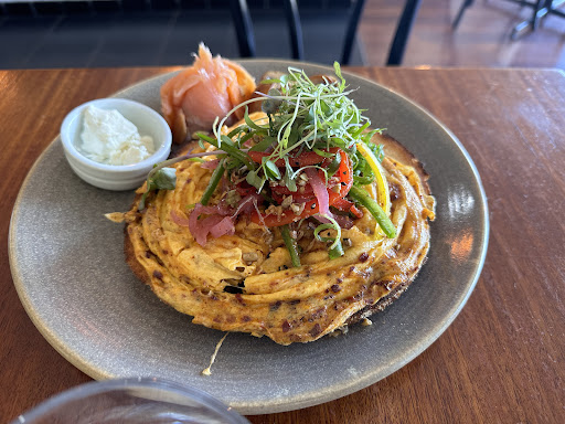 The food here is simply just incredible. We sat her for breakfast which is available all day. The lunch menu is also available all day. The menu is simple and has a wide variety of common breakfast items to choose from. I made a dish out of a selection of sides with mushrooms and eggs and spinach and hash browns and tomatoes. Everything was so delicious and fresh and beautifully presented on the plate.