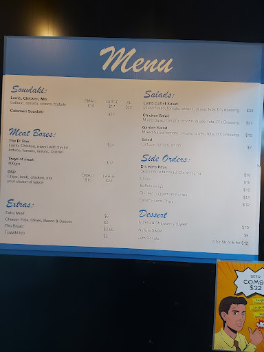 Ordered the d’s box thinking it was chips, meat, lettuce and pitta like a platter style only to realise I paid extra for an open souvlaki in a box. I also Paid 12 dollars for a Jack and coke which had no ice and was 3 quarters full and served in a paper cup. And to top it off the chips were half cooked and the pitta bread was a bit dry won’t be coming back anytime soon.