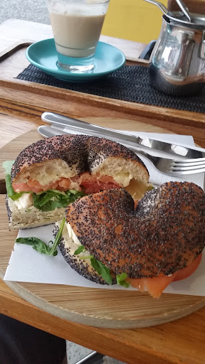 Breakfast @The_Eastern_Bloc for a relaxing cup of chai latte and a poppy seed bagel with smoked salmon, cream cheese, baby spinach and tomato. The chai latte is laden with spices, pouring it via the sieve to get 2 cups of the lovely aroma laden chai. This was enjoyed with the delicious bagel creation which is a satisfying way to start the weekend.