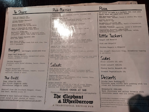 Read moreWe are usually fans of the elephant and wheelbarrow and come every few months for a roast. Unfortunately this visit has ruined it for us I think. Firstly, we were one of the first customers in at 12pm on a Sunday and ordered an orange juice but they didn’t have any which seems a bit silly. We ended up ordering 2 Turkey roasts and some sides and it came to about $110 which was quite expensive but we thought it would be worth it.