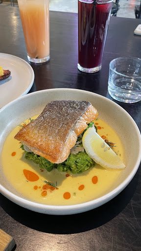 âŞď¸Spicy Chorizo Benedict ($26) Grilled chorizo, poached eggs, house-made hash browns, snow pea tendrils, green apple, vinaigrette, Bearnaise sauce âŞď¸Soft Shell Crab Soft Shell Tacos ($19) Warm tortillas, guacamole, slaw, coriander, Thai basil, lime, tomato salsa, pickled chilli, Sriracha mayo âŞď¸Grilled Salmon with broad bean and pea smash ($30) pickled shallots, dill, chervil, salmon roe, beurre blanc âŞď¸Ruby Grapefruit Cold Pressed Juice ($7.50) âŞď¸Pomegranate Cold Pressed Juice ($9)