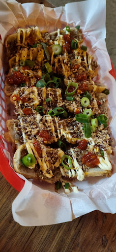 Read moreSmall shop front, wouldn't ne suitable for groups. We just fit the pram in. Look I love me a burger, Being Gluten Free and unable to eat red meat I only had one choice on the menu and it was an average burger. Most places always reheat you a frozen Bun, which I get, but It frustrates me when they come out still cold to touch, which this was. Couldn't eat the chips, not Gluten Free. Husband loves there loaded chips BTW. I just feel if it was a choice between here and Grilld(this is where my measuring comes from) Grilld would win, even with Grilld high prices.