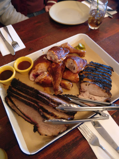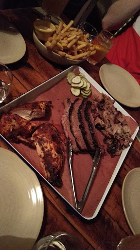 Sigh... Read quite a few reviews that this place is great, the meats are good and everything. What a let down and a disappointment of a Sunday lunch. Booked this place with 18 people for a birthday lunch, the place asked for preorder meal as they need to prepare any of the smoked meats (totally understand about that, it does take quite a long time to smoked brisket etc).. so 12 out of 18 of us pre-ordered the set menu. That photo you saw in this review, we got 2 trays of it, plus 3 racks of ribs (we paid extra for them, well there is another issue there), along with Mac & Cheese, and Carolina Slaw. So let's me tell you the problem with the food. The brisket is dry and doesn't have much meat tastes inside. The pork belly is okay, think the chicken is the best of the lot. Ribs.. there are not enough to share and that's from 2.5 rack up to 3. It is not falling off the bone soft and quite stingy too. Guess the bit that really set me off with one star, they charged us extra 120 bux for that half a rack increased. Already paying 45 bux a head for the meal. The slaw later I found out, it was not mixed properly. The one I had, it has the celery, green apple and cabbage. But the bowl at the other end of the table, only cabbage. I don't know why people say this place is good. Service is horrible. There were only 2 staffs on for the Sunday and there are other customers there. Just no services... Oh have I mentioned this place charge 22 bux for a pint of Little Creatures ale? Seriously they know how to charge you but boy the meal and drinks are all disappointed. I don't know why anyone would come here while there are many better...