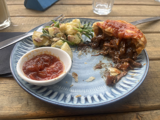 In the area for a getaway with my girlfriend and she found this great spot on google with a high rating. So glad we stopped in for a late brunch! Had the Beef Burgundy pie and my girlfriend had the Beef, Pepper and Mushroom. Both homemade with a delicious side of potato salad, easily the best pies Iāve tasted in a looong time! I can understand why the pie warmers nearly empty by 10am, well worth it! They make a delicious coffee, and their range of homemade treats makes for a tricky choice on what to indulge on, and when to stop š Very happy with our choice of Banana bread, Hot Cross bun (it wouldāve indeed been rude not too! š¤¤) and PB Yo-yo (sadly they didnāt last long enough for a photo). All of this with great service that made for great start to our day! And thanks for the Cape Shanck Lighthouse recommendation, we had a awesome, spontaneous little adventure that made our day!