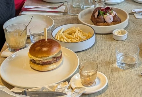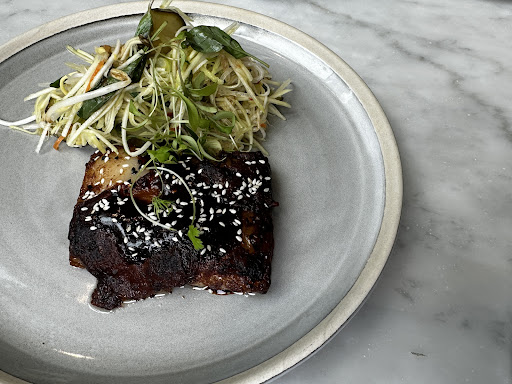 When our food finally arrived, we were excited by the beautiful presentation, but the taste was a huge disappointment. I ordered lamb ribs with papaya salad, but what I received resembled lamb belly with an excessive amount of fat (I've attached a photo). My friend ordered the beef burger, but the beef tasted like beef jerky. Another friend ordered fried chicken, which was equally disappointing. It consisted of three pieces of thinly crumbed and overly deep-fried chicken breast, dry and tasteless. The fourth dish was vegetarian, and the friend who ordered it found it to be just okay.