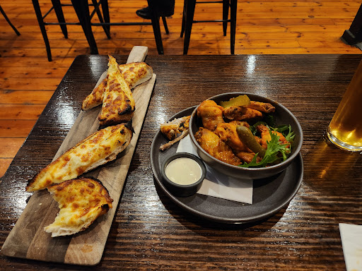 The food, however, let's them down. I ordered buffalo chicken wings (with Franks), cheesy bread, and a southern style chicken burger; the special for the night.