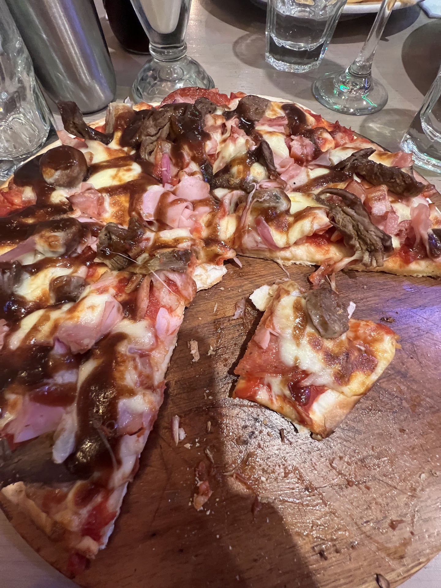 Read moreabsolutely disgraceful the food not it and never will be it. patience does not exist with these servers apparently, my party of 5 had been sitting down for no more than 2 minutes (120 seconds) before quickly having to put our orders in revealing how understaffed and over seated this establishment was tonight. First the PIZZA (see in attached image below to see what i mean) this pizza was no where near the expected standard from a restaurant that has a wood fire pizza oven, we stoped the waiter to ask if the pizza bases were homemade and they lied directly to our innocent faces. which was not needed. Next thing that absolutely ticked me off was the CHICKEN PARMA. at first it looked promising but BAM the second it was cut into dry, flavourless , stringing and HAIR !?. No complements to the chef for the steak sandwich i asked for medium rare and got WELL over done which came on a lousy thin slice of lifeless bread. ( i must admit on the menu it did say” open steak sandwich”. but a definition of sandwich has two slices of bread NOT ONE cold piece of bread drowned in sauce) trying to cut my tough steak, took longer than the sever asking for our orders. As i entered the bathroom… i was not amazed by the look of this ratchet bathroom( also seen in the images below ) my heart skipped a beat the first time i saw this disgraceful of a “bathroom” that was so called cleaned earlier that evening. PS my daughter had asked the sever ( possible manger i would say) for some tomato sauce he proceeded to then yell at a younger and newer seeming waitress to get the sauce ( not a nice environment to be in) . PSPS this time is not this restaurants first chance they have many from our family (none good) but we decided to try again tonight, sad to say...