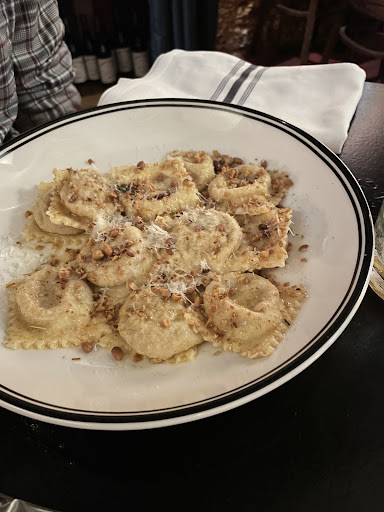 the focaccia with olive oil and balsamic vinegar. The focaccia was warm and honestly one of the best Iāve had, canāt get it out of my head Mushroom and lentil pate with crostini and cornichons ā damn those crostinis, were so delicate and the crispiest Iāve had Ravioli filled with pumpkin. This dish was my highlight, the sweet but savoury flavours reminded me of Diwali back home! Puttanesca was lovely too Chocolate mousse ā we thought we wouldnāt finish it coz we were quite full, but it was so smooth, silky and delicious that we wiped our plates clean!