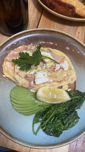 We started with coffees - a latte with caramel syrup, and an oat cap. The menu had plenty of savoury options and a few sweet ones - I really want to try the kanefi bircher muesli next time! My friend and I decided on the savoury meals - Grease Monkey (big breakfast), and the Scrambled Salmon with additionals (Spinach and Avo). Having the scrambled salmon, I thought it tasted really nice. I’m used to the smoked salmon and poached egg combo, so it was nice to have the scrambled texture instead, with the smoked salmon mixed in. The Grease Monkey looked really hearty and filling. Alongside our meals we ordered the “Melancholy” watermelon drink. This was incredibly good! Very refreshing, and not sickly sweet like other drinks I’ve had before at other places.