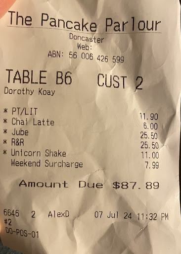 Read moreLast night after work, I went to visit Pancake Parlour for a quick snack and a takeaway. This used to be my hanging out place with my friends. We use to come here very often. But these few years, the quality and the food has dropped significantly. Price went up and the portions of the food got smaller. I use to love the Fresh Strawberry Pancakes and Deluxe Fries here. I haven't been here for few years since I mostly lived overseas for work for quite sometime. Last night I revisited this old place and ordered my Favourites as mentioned above, Strawberry Pancakes for Dine-In and Deluxe Fries for takeaway with extra Sour Cream. The Strawberry Pancakes quality did not tastes as Good as it use to be. The Strawberrys were fresh, but less portions than what I use to have and the Pancake tasted dry and a bit weird, was like a lot of grains in it. Got home and looked at the Deluxe Fries, they were the usual size except they didn't give me the extra Sour Cream I paid $4.40 for if I remember the price correctly. Only had one serve of Sour Cream and enough to enjoy the Fries. I ordered it for a snack later on for watching a TV show. Now everything is ordered Electronically from the Website via scanning a Bar Code. Seriously lost that touch of service talking to the waiter what I want. Was wanting to add extra Cheese as well other than extra Sour Cream, but they don't offer it on the Menu on the website. Seriously this is not as Good as it used to be and the Prices aren't...