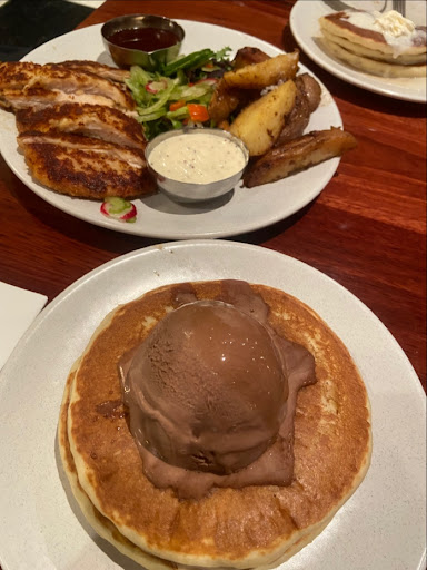 Had to wait awhile for this to open but can see why the fitout is great! Hadn't actually been to a Pancake Parlour in years but glad to see still had spinach and feta crepes while husband had shortstack with egg white omelette. I loved mine and would have again, he wouldn't. Had this at 9.30am then at 1.15pm after movies (Top Gun don't miss) went back. Coffees (flat white and decaf soy latte good but way too much foam on soy latte) and I had lemon and sugar pancakes (truly a classic) while husband had mini pancakes with blueberries. The decor is really nice too. I also noticed was very popular with families. However while our waitperson in morning was great the one in the afternoon was not. She seated me then proceeded to ignore me so had to get attention of someone else, she was really bad. Would go again. But would like to see more savoury vegetarian options instead of just spinach and feta crepe. 5.2 went with 2 kids. 1 had basic pancake and icecream while other had pancake with ice-cream, hot chocolate fudge sauce and sprinkles. And there was a lot of choc sauce! I had spinach and feta crepe while husband had devonshire pancakes. Really good service and would go back. 10.4 went back and had spinach crepe again and husband had eggs and bacon. Note waitperson (Zoe if I remember correctly) was fantastic! 6.7 here with 2 kids who both had Alice in Wonderland (pancake with ice-cream, chocolate sauce and sprinkles). Looked delicious! Though I had spinach and feta crepe and husband had blueberry and rhubarb pancake. This is a great place to take kids. 4.4.24 spinach crepes for me, farmers breakfast for friend and basic short stack for teenager. 30.3. Great Easter Saturday special, with...