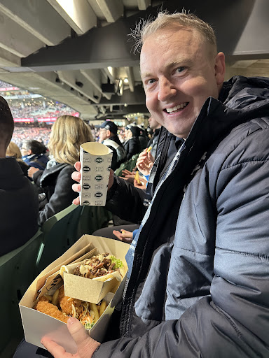 Great location for MCG pre and post game catch-ups. I had nearly 20 come along for the pre-match dinner before Carlton’s elimination final. The food should have started just after our 5.45pm arrival. As it was we had 3 rounds of chips before any other food arrived. My poor pescatarian friend had to wolf down a vegetarian pasta as we were leaving at 7.30pm. The rest of us tired of the 2 rounds of chicken wings and the pasta wasn’t something people could eat easily standing. The bao buns were tasty and much needed. I didn’t see and meatballs, arancinis, croquettes or wontons that are on their menu. Anyway we loved having our own back room but most left feeling hungry and not have got their value for money. 19 @ $45 = $855. That’s a lot of money for not much. Pity. Maybe the trick is to book earlier than 5.45pm but that’s difficult on a work day. The manager had phoned to say that we need to order straight away on arrival but that was easier said than done. Regardless we enjoyed the pre-match excitement and buzz there, and Carlton won so as is our tradition, we celebrated at the Pullman. Here’s a pick of what everyone was eating at the footy after Tipplers sparse pre-game tapas ‘dinner’. We are just going to have a beer and a pie at the...