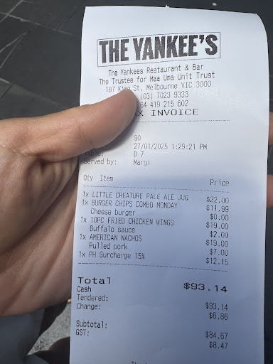 We also said we understand if the sauce have to pay is ok, but the waiter never said there will be an extra cost and not the sauce we asked for! Then she said ok she will ask the waiter then she come back to us saying that he did not add on to our bill, then we pay the bill, after paid we asked for receipt then we just leave, because we trust her so we did not check the bill before we leave, also no point to check because she asked us to pay before give the bill receipt and the receipt is I ask for it! Then when I and my girlfriend already left by walking on the street to look at the receipt to spite the bill for bank transfer, realised that they charge us for the sauce!!!