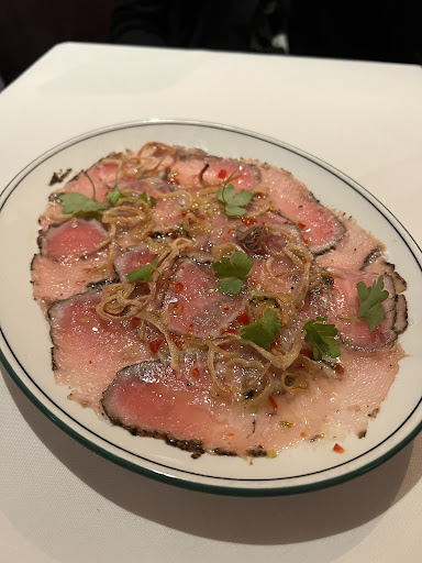 For entrees, we ordered the grilled octopus and beef carpaccio. Octopus was perfectly cooked, so tender and cut so easily. Wasnāt rubbery at all. Very well seasoned and all the flavours paired amazing together. Potatoes were on the more bland side though. The beef carpaccio melted in your mouth! As soon as it hits your tongue, you get that smooth, buttery/oily feel. The lemon olive oil cut through the oiliness, and those croutons gave a very nice touch. The Parmesan gave the dish a little bit of tang, was the perfect bite!