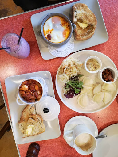 We didn't know what to order so Peter actually helped us to make up the minds. And luckily he did.. the meal was quite memorable. ◾Beans of Brittany - home made baked beans with polish sausages, bacon and ham ◾Baked Spanish eggs with tomato concasse, garlic, chorizo, and smoked paprika ◾Egg & bacon muffin ◾Pierogi - this is Polish traditional dumplings using organic homemade quark mashed potatoes, caramelised onions, lightly pickled coleslaw and crispy bacon