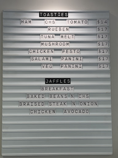Read moreHad a great plain cheese toastie here, loved that it was made on sourdough bread - was such a nice crunch! Unfortunately my toastie had the flavouring of the prior toastie that must have been made in there, on the outlining of 2 sides of crust which I couldn't eat (no idea what it was, tuna? salami?) something that appeared like a liquid that was on the crust and cooked into it. I also found $10 for a plain cheese toastie expensive, however understand that sourdough does cost more than regular bread, and the toastie was larger than I expected to maybe okay. Other than this I enjoyed my...