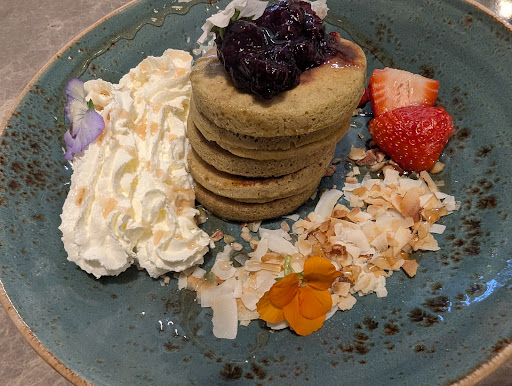 The fritter stack which is amazing - fresh, light but full of flavour. The fritters wonderfully cooked and seasoned, even better when you mixed it with all the avo and perfectly poached egg.