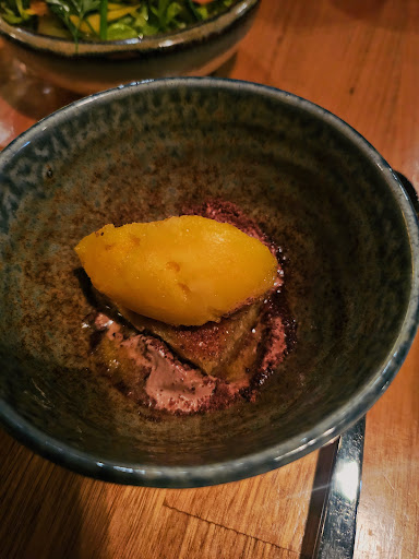 1st course - the highlight of the tasting course. Unfortunately, the bread was hard, and the cheese unpleasant. However, I thoroughly enjoyed the date butter! Such an interesting combination. The lentil dip felt mealy, and there wasn't enough bread to properly enjoy all the dips. The olives and olive oil were nice - a solid 3/5.