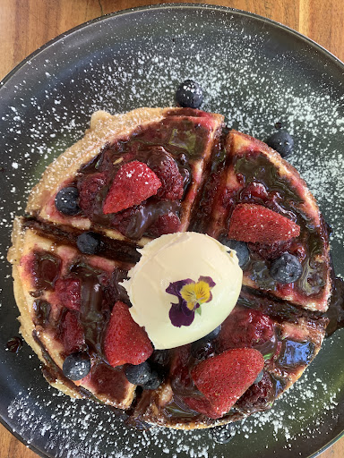 Total complements to the chef with his delectable entree dish that was the perfect dinner for a healthier eater like myself. I engulfed the beautifully presented green dish. The fresh lemon added appropriate tang to the velvet buttery and garlic-esque kale and broccolini. The sweet potato chips were more than a healthy serving but we're crisp to the bite which is exactly what you look for when ordering such a dish. Cannot stand other restaurants that happily serve soggy sweet potato chips. The star of the eating experience however was the sticky date pudding dessert. This defeated my healthy eating shamelessly so. The presentation rivalled television prepared dessert and tasted divine. The icecream was smartly separated as to not contaminate the perfection that is the date pudding. Moist, warm, and flavoursome.
