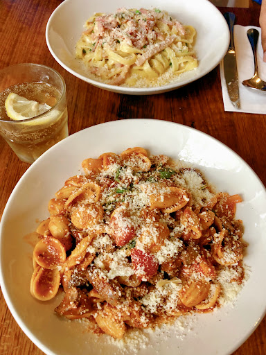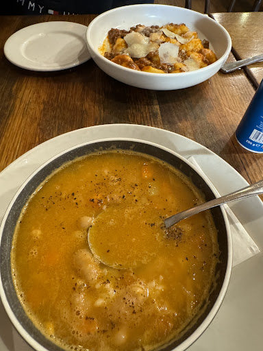 Read moreI had a solo early dinner here tonight at just on 6.15pm. Spaghetti marinara, and a glass of delicious red wine. The pasta was yummy, with just enough tooth, and a good and reasonably generous sauce. The reason I am giving this restaurent three stars rather than four, is that I felt incredibly rushed by the staff. I had three different staff ask me about wine (I ordered a single glass which turned out to be delicious, and some sparkling water which turned out to be invisible) and then the same three came back and asked about food. And then one or another kept coming back to ask about more wine. Or dessert or coffee. And when I indicated I'd like a few more minutes between finishing a generous plate of pasta and thinking about dessert they just kept coming back every couple of minutes. Then just when I had made up my mind to order dessert, I was presented with the bill and asked to go into the next room to pay it. I put the dollars on the tray and continued to sip my wine, with the cash visible on the table. Then it was taken away and returned with my change. Overall I felt loomed over, and actually quite unwelcome, I felt as if I was being rushed the entire time. So even though the pasta was good, this...