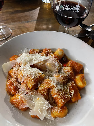 The positives, I have been coming to the University Cafe for a few years, the service is always good, fast, polite and knowledgeable. Last night 4 of us met up for a meal, again the service was spot on and efficient. We ordered Lasagne, Rissoto Seafood, Pork Ragu and a Pork dish that escapes me now. The meals arrived together and the first thing I noticed was my friends Lasagna was this sloppy runny mess with no shape or structure to it, what should have been between the layers was this runny slop with sheets of pasta swimming in it. My Rissoto was also a sloppy runny mess, my friend described his Pork dish as old boots, the pork ragu was OK. All the meals except the pork dish were extremely salty, my mate commented his Lasagne was "so salty he was shocked as he loves salt" he only ate half. I ate half of my Rissoto as it was salty and sloppy. The Lasagne and Rissoto had the texture of being reheated in a Microwave. The other dishes completed but both commented on how disappointing they were. When the waiter came to clear the plates I did advise him as only part of the Lasagne was touched, that the food was way to salty. He apologised. We did not stay for coffee or desert, we went to another venue. Over all it was disappointing as we had all had good meals over history. None of us would go back in a hurry. Very...