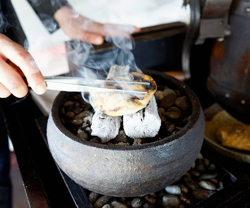 smoked damper (bread) 🍞 just look at those gorgeous char lines 😍 i can't even begin to describe the wonderful smell this bread emanated throughout the entire room as the hibachi grill softened and molded it to perfection... just drooling at how good this bread was, we even asked for seconds which they were more than happy to provide 😅