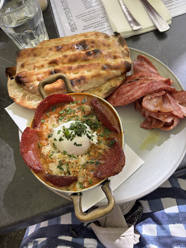 I got the bean cassoulet with sucuk and (because I was extra hungry) a side of bacon. I asked them to swap out the usual bread for Turkish, and they happily obliged.