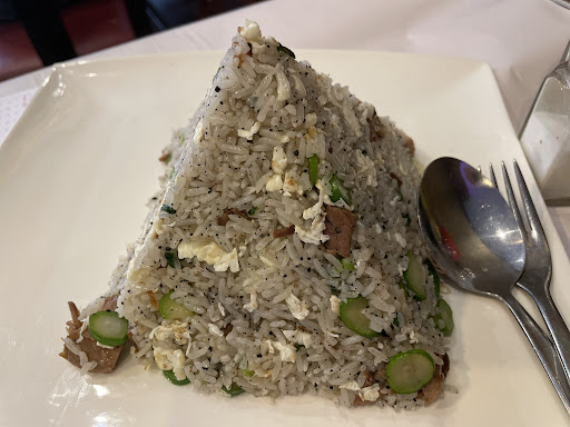 Waiting, waiting. Eventually order. Glasses of wine quick to appear but food quite slow. Just two of us. Not ideal for Chinese restaurant dining … but tourist couples can’t produce large dining parties out of their R’s. A sweet and sour pork and a seafood rice. Neither above average. Pork pieces in “fish and chip style batter” (appears to be the local Chinese restaurant “style”) and seafood rice (premium priced) mostly all (expensive) rice with a minimal selection of seafood … mostly white fish (ok taste and texture), a few prawn pieces and a few chunks of (rubbery) squid. The seafood rice definitely the better of the two plates but overall disappointing. There’s a “squillion” Chinese restaurant in this area … statistically you’ll do better by walking...