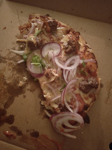 Now... I’m not the one to complain about service, but the workers were absolutely ghastly! I brushed this off, and after a short while we got the goods. We raced back to our accomodation to enjoy our delicious feast. We opened our boxes and took a slice and dug in. I’m not too sure what happened but a sudden dreadful feeling expelled into my stomach. My beautiful girlfriend’s perfect porcelain face contorted in disgust. Her eyes welled with tears as she looked into mine. I tried to put on a brave face for her but alas I succumbed to tears. We both embraced eachother and began to sob uncontrollably and violently. We sobbed and sobbed into the wee hours of the night. I exaggerate not my dear friends, DO NOT under any circumstances order from this hellhouse masquerading as a fine pizza establishment! I stared into the devil’s eyes that night, and it was...