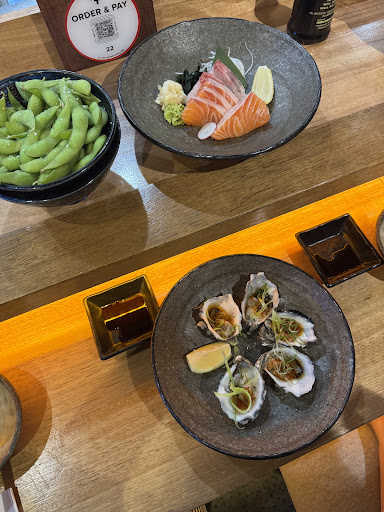 The food is good - but this is also why it gets 3 stars. For a seafood-based restaurant, it’s amazing to me that they essentially just provide either salmon or kingfish (the latter being not the tastiest of fish) for most of their sushi/sashimi. The platter which should be their signature dish was competent, but quite unsatisfying… the problem we had was that after the platter, there was nothing on their menu that enticed us - or even intrigued us to try. The drink choice was also poor - my wife had to make do with a bottled lemon-lime-bitters… and very few alcoholic options (if you don’t like Asahi beers)