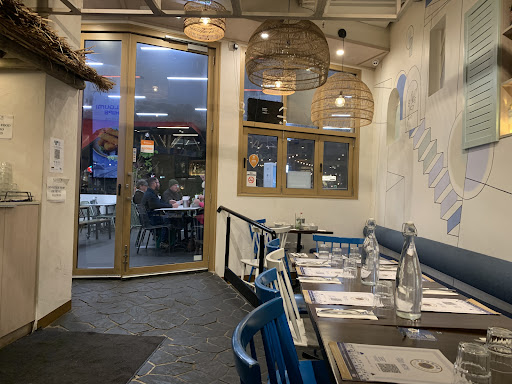 I went there on Friday night and it was bustling. They have inside and outside seating, although I was lucky to secure a seat inside. I love the decor: the combo of blue and white gives the place an airy feel, which isn’t far from the Santorini look they were clearly going for. The staff were lovely and quickly seated me and my family to a table. Usually we’d order from our phones using the QR codes at the table, but we needed to go to the counter because of technical issues. Even then, the courteous staff helped to make this just as easy.