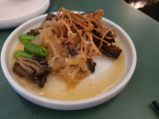 The starter was pleasant, Fried Enoki, Snow Fungus and some other things that blended quite well on your tongue. There was something special in the sauce, ginger, very subtle, very artful... eh you know ah, their bbq mushroom in this dish damn good! Reminds me how your auntie Feli's family always made Tong Sui for me. Aiya, I digress (5/5)