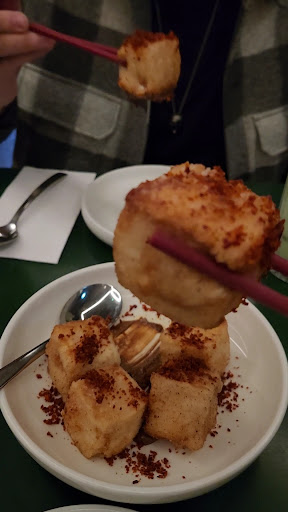 ❤ My top 3 favourites were the Deep fried silken tofu, Dry aged duck and the Roasted baby carrots. If you want an incredible thin layer of BIG crispy tofu, but the softest and creamiest insides then you're in the right place. The black garlic adds a bit of magic to the dish that becomes addictive and memorable for the whole night. The dry aged duck isn't as crispy as Aru's, where the skin shatters in your mouth. However, the inspiration from the French duck l'orange is beautiful and I enjoy the twist of fruits with savoury meats. Controversial for some, I know! I don't usually have fried egg custard, so this was a real treat. The egg flavour exploded in my mouth, the jiggliness reminiscent of the tofu from earlier. The baby carrots were amazingly soft. Although it was a main, it paired well as a fun partner to the duck.