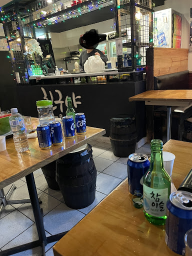 They even have one of those blue sojus that's popular in Korea atm (much more smoother than green ones). For anju, I highly recommend "Spicy Beef Ribs Stew" & "Watermelon Fruit Salad (íì±/hwachae". Why? First, you can't get them anywhere else in the city. Second, they are delicious. Both wakes you up just enough to grab another bottle. Maybe, that's their...