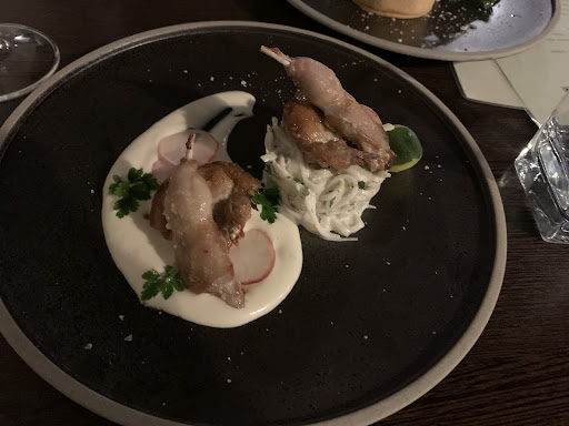Wasn’t very hungry so just ordered some entrees. The place itself is looking quite fancy and romantic for a hotel restaurant. Love the acoustic pop songs they played as a background. We ordered quail and veggie tart dish (forgot to take picture of tart dish). Quail is disappointingly came skinless and chopped into pieces. I like the aioli sauce that came with it and the zucchini noodles. The veggie tart wasn’t anything special, came with some rockets salad. Also had their pina colada mocktail, which was interestingly came with coconut milk in it, but it was delicious! We also got fried ice cream after seeing it came for another table, thinking it looked amazing. Unfortunately taste is not very good, it was hard coating and ice cream inside all melted. The Chinese restaurants’ ones would look worse but...
