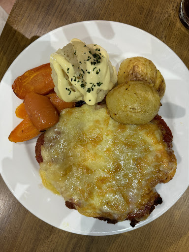 I gotta say, walking into this pub, from outside I was not expecting much but that sports bar... Oh my what a great setup. Possibly the best sports bar I've been to. The size of the areas was right, there were enough TVs and enough space to sit in and have a meal as well as see the races or any sports. The actual facilities were excellent. Very well kept and very aesthetic. Beer was cold, service was wonderful so I thought surely then the food must be average. I was wrong. Bloody great parmi, nothing game changing or earth shattering. Just a well executed tasty classic pot and parmi for a great price. My friend couldn't finish her steak so naturally I did. Where I live I have access to some of the best steak in the country and the best steak houses around, I'm also an avid cook and barbequer myself so I will rarely order a steak at a pub as they just don't hit the mark for me. This one was cooked perfectly, season correctly and while the cut of meat wasn't fantastic the chef did a brilliant job at making it the best it could be. While I personally wouldn't order it my friend was very happy with it and I was very surprised at how good this particular pub steak was. I would love to see what the chef can do with premium hand fed cuts but unfortunately the clientele here is not the right market for that. I haven't tried the tomahawk yet, that will be a shared meal for our last night here and I am looking forward to it immensely. If you've made it this far through my long winded review, thank you for reading and you need to try this pub if you like a good sports bar with good food and friendly service. Excellent job team. This is what happens when an establishment has the right people from the ground up. Keep up the good work and I hope to be working in mildura more regularly. I know what my local work pub shall be now. Stay tuned for the review of...