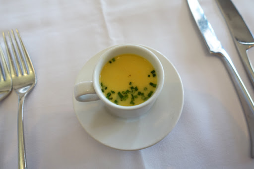 Sunday lunch can be taken as Two Courses ($70/head) or Three Courses ($80/head) and arrives with complimentary extras like bread and butter. It’s popular so I’d suggest booking ahead. When we arrive, blue plaid shirts abound in the dining room, mostly filled with older, middle-class Caucasian guests. Perhaps this is why the kitchen thought my pretty trio of kimchi scallops needed tempering with honey and crème fraiche. The kimchi itself is quite good, and the scallops, while small, are not overcooked. What I didn’t like, was eating something that tasted like an upmarket version of seafood with sour cream and sweet chilli sauce.
