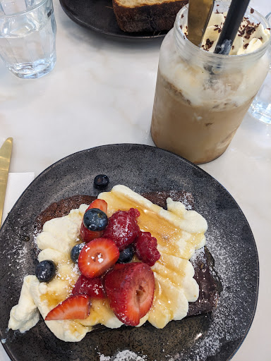 Read moreMe and my boyfriend visited the cafe over the mother's day weekend. I can't eat anything with dairy because my baby girl suffers with CMPA so I asked the wait staff which dairy free options were available on the menu thinking they would point out the vegan options, options that don't include dairy or options that could be adapted to leave out or substitute dairy ingredients. First of all the person serving didnt seem at all sure that there were any options on the menu. I spotted a granola bowl on the menu and asked about this but was told it has yoghurt so I asked about the Acai bowl which doesnt usually contain dairy at any cafe Ive ever eaten it at. The person serving said yes that's dairy free so I ordered that. When it arrived it was a large bowl of acai ice cream, 1 or 2 large strawberries haphazardly chopped into thick slices, a child's handful of blueberries, some seeds and some coconut shavings thrown on top. The presentation was far from the photo shown on the website or a google search and most of the ingredients were missing - no banana, no granola, no raspberries, no chia pudding let alone fancy flowers shown in the photos. So disappointed. The cafe is really well reviewed and was recommended so maybe we caught then on a bad day, maybe they didnt like me asking for a dairy free option? My boyfriend ordered the french toast which he enjoyed but again the service was poor - the person serving plonked it down on the table without even looking at us before turning away. Staff had to be prompted to bring cutlery. Sadly cant recommend based on...