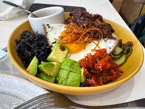 Read moreThird time back at Busy Bee Kitchen and I still love this cafe. I had the bacon and egg roll, the Korean nourish bowl, and the banana toffee pancake every dish hit the spot. The roll was cozy and perfect: crisp bacon, soft bun, silky yolk, just the right sauce. The nourish bowl was fresh, tangy, and super balanced crunch, heat, and sesame vibes. And that banana toffee pancake? Fluffy center, caramelized edges, glossy toffee, ripe bananas sweet but not heavy.