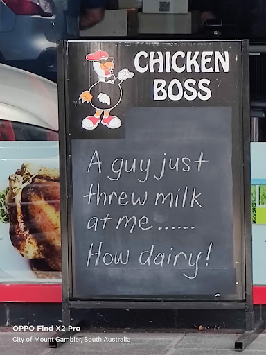 Read moreAfter a five hour journey from the city of Adelaide, we were pretty hungry and exhausted. We stopped over at Mt. Gambier to look for a place to eat, and that was when we noticed Chicken Boss. Upon entering, I noticed the menus offered were a lot and the prices were really cheap and reasonable. We bought the AB(fries topped with mixed meat with sauces) and one large roasted lilydale chicken. It was the BEST dinner we have ever had! I would suggest anyone who come to Mt. Gambier to try Chicken Boss!...