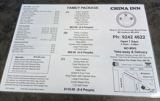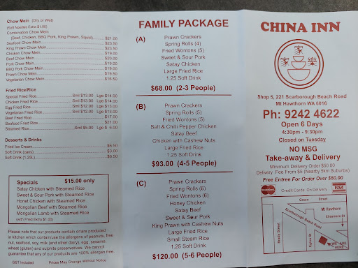 Read moreSalutations Culinary Coverts, 😃✌🏼 for a cruise West, or East along Scarborough Beach, there’s Certainly merchandise & fair aplenty❗️✨👍🏻 For a reasonably pri¢ed snack or meal I usually travel ‘East’👘✨ I just L❤️VE that Complex taste✨of the Orient✨⛩✨✅ From an established yet quaint, humble little dine in or takeaway shop, located in Mount Hawthorn, where there’s easy parking, right across from a bottleO’, an Award Winning Florist , a Hairdresser, a baby bunting store & a Specialist Dive💦 Shop. ( for those multitaskers ) An equally Friendly Staff of the China Inn, More than 😃✅to cater for Welcomed requests, preferences from those More travelled patrons, to local generally less particular on the spices 🌶✨ ‘Incidentally’, along with their Specialist offerings, further spoil yourself on an Absolutely tantalising treat, of the ‘Fried ice cream’ 🍨 Compliments to their Chef, on the way desiccated coconut has been introduced. Very Intercontinental, & Very Proud of their return Customer...